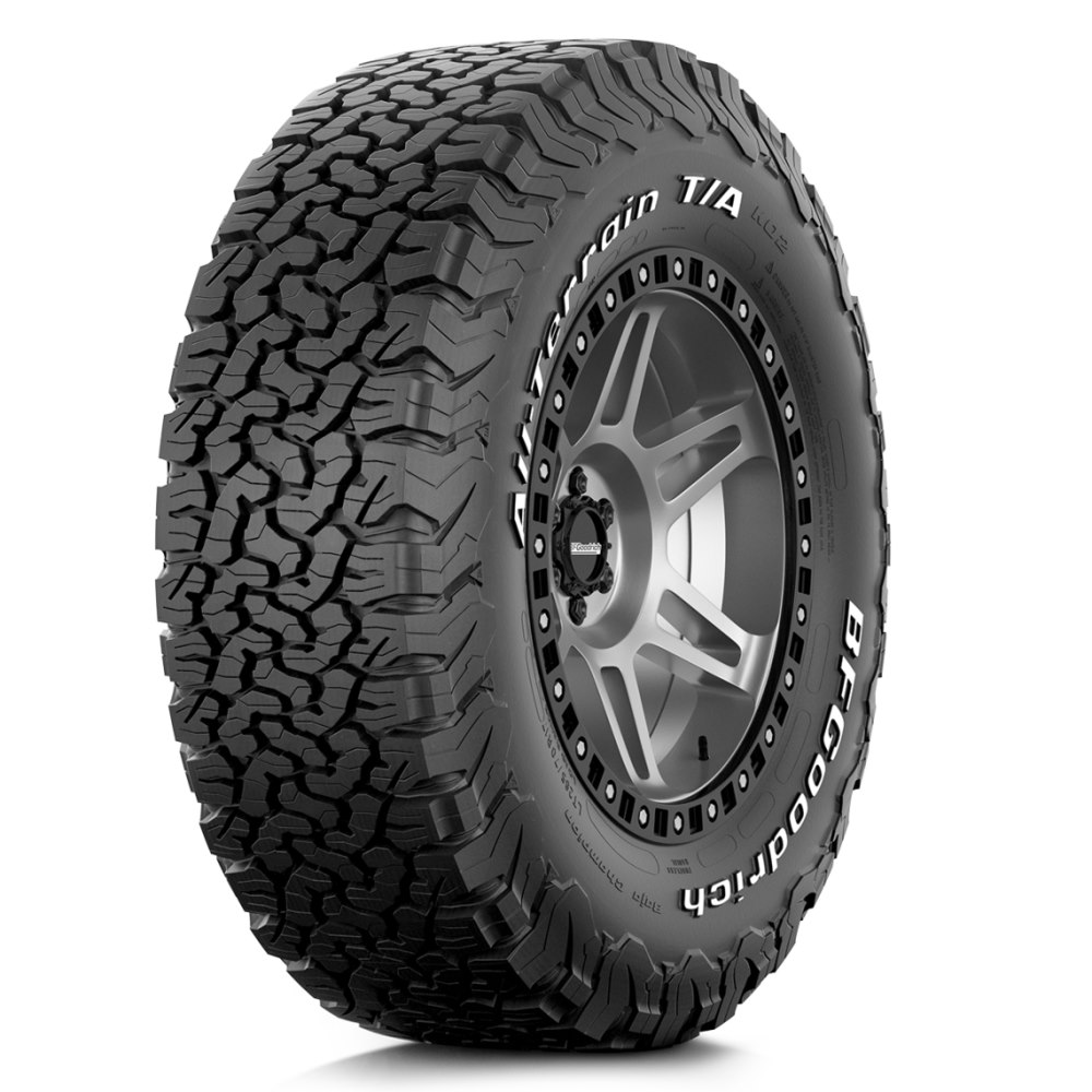 BF Goodrich's toughest all-terrain tyre, ever. Aggressive traction for on and off-road adventures, BFGoodrich All-Terrain T/A KO2. Discover. Explore. Conquer. β’ BFGoodrich all-terrain and all-season 4x4, SUV and light truck tyre β’ Aggressive all-terrain traction on and off-road β’ Robust sidewall design β’ Staggered shoulder blocks for greater maneuverability in soft soil and deep snow β’ Advanced tread design for longer wear
