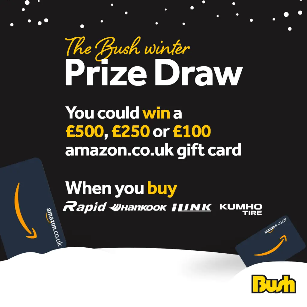 1. The WINTER PRIZE DRAW promotion (the promotion) will run from 1st December 2025 through to 31st January 2026 and is available from any BUSH TYRES outlets.