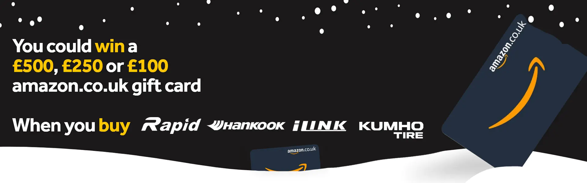 Buy any Rapid, Hankook, iLink or Kumho tyre from any of our depots between the 1st December 2025 and the 31st January 2026 for the chance to win a £500 Amazon Gift Card.