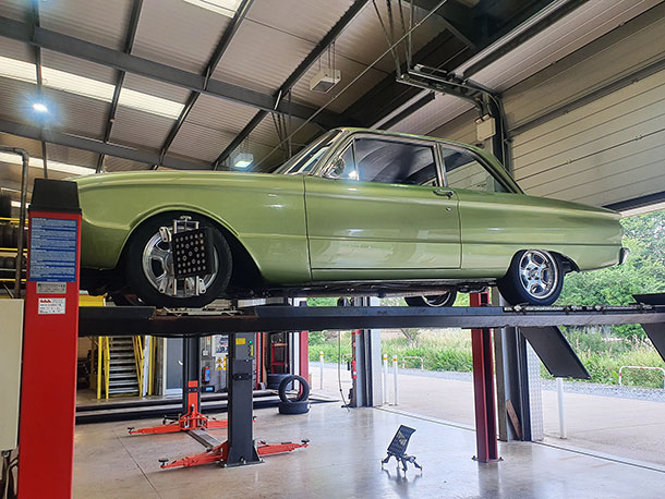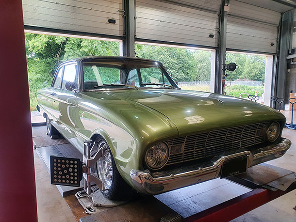 This stunning green 1964 Ford Falcon featuring a 2.8 straight six engine recently visited our Spalding branch where the team performed a wheel alignment check and adjustment.