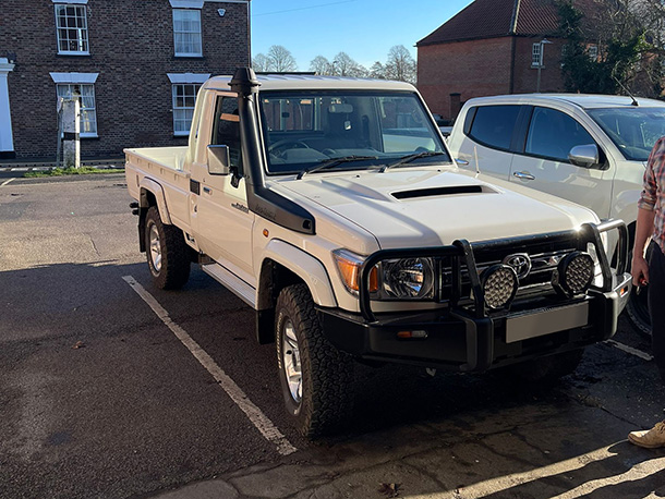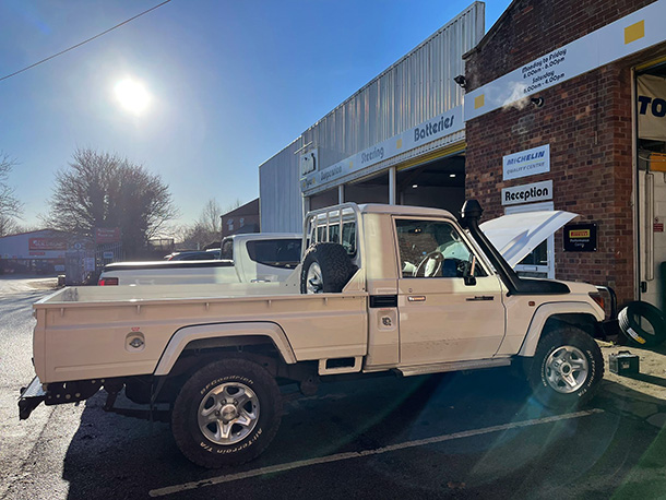 This 2021 white Toyota LandCruiser 70 pickup also known as a Ute came to our Horncastle branch for a new battery.