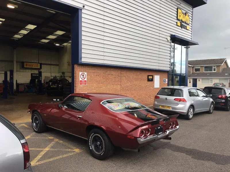 1973 Chevrolet Camaro Z28 in for a full set of:5x 255/60R15 BF Goodrich Radial TA with raised outside white lettering fitted at Bourne Depot. www.bushtyres.co.uk
