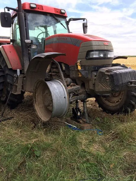 John Deere with a blowout during this years harvest, back running again quickly thanks to the Wolds Commercial Team.