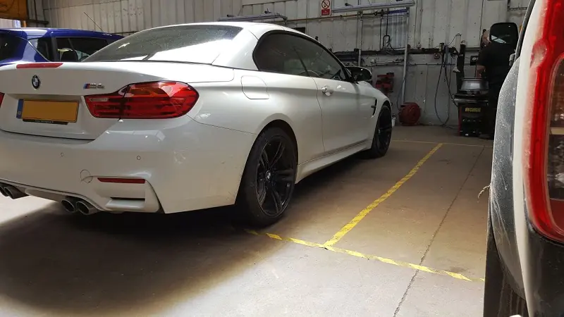 BMW M4 ConvertibleThis BMW M4 Convertible visited our Boston depot for a pair of 27535ZR19 Michelin Pilot Super Sports, and black wheel weights.