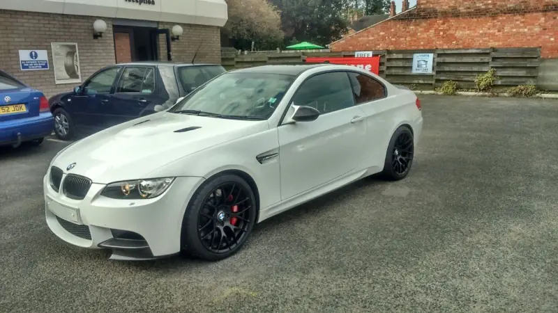 This months Car of the Month entry was very impressive! 3 White BMW's (one pictured) all came in for new tyres.The E92 V8 M3 with stop tech brakes, carbon seats and masses of extras came in for a pair of fronts 24535ZR19 Mixchelin Pilot Super Sports.An E30 M3 came in for a new pair of fronts 20555R15 and the X5 5.0D Msport 3 Turbo had a full set of Bridgestone Dsports 27540R20 and 31535R20 with