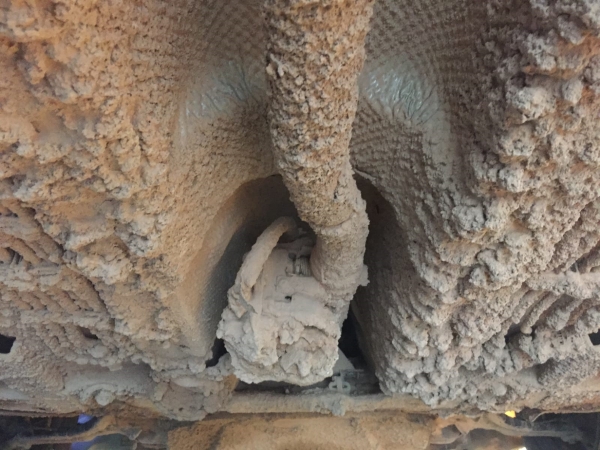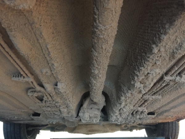 One of the more strange things we’ve had to do, in at our Grimsby centre, was working on this van, which had gained weight because of rather a large amount of concrete being plastered to the underside of it!