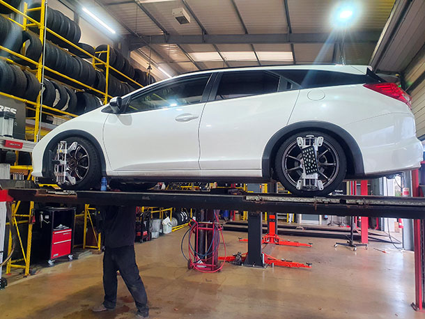 Something a little bit different from SR Autosource, they brought their 2014 Honda Civic Tourer to our Spalding branch for new Enkei PF09 wheels, new Toyo PROXES TR1 tyres, Eibach Pro-Kit Lowering Springs and a wheel alignment.