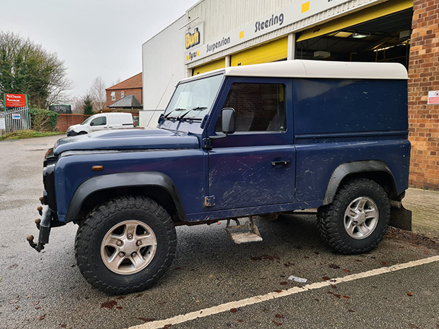 Land Rover Defender 90 in for full set of Toyo Open Country Mud Terrains at our Horncastle Depot
