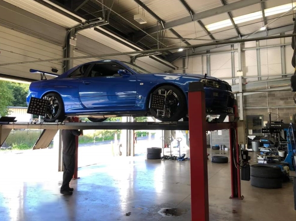 Bush Tyres wheel aligning a Nissan Skyline GTR R34