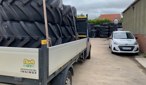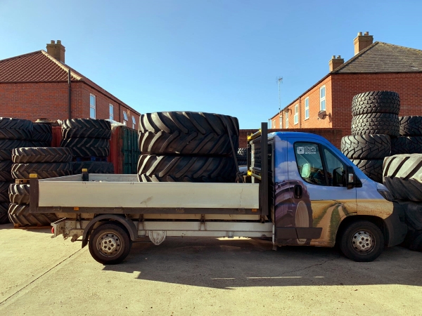 Pictured, below, are a full set of 710/55R30 Mitas SFT tyres on Stocks wheels, loaded and ready to be taken to the manufacturer.