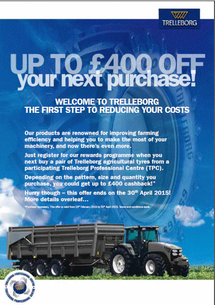 Here at Bush Tyres we are happy to announce Trellborgs sell out campaign, giving customers significant Cashback on pairs of selected Trelleborg tyres, the only catch is they must register for the rewards programme and they must buy their tyres through a TPC to receive the Cashback as below. Pattern                         &n
