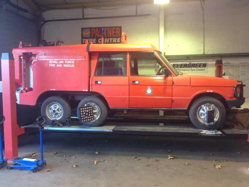 Here at Bush tyres we don't just deal with cars!This six wheeled Range Rover Aircraft fire engine came into our Horncastle depot to take advantage of our free alignment checks.To learn more about our Horncastle depot and to learn more about the services it can provide please click the link below:http://www.bushtyres.co.uk/store-locator/Horncastle-21.htm