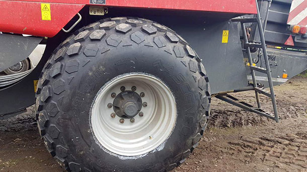 Our Immingham Bushmobile team recently fitted 28L-26 Ascenso PCB 360 tyres to two Massey Ferguson 2290 balers.The Ascenso PCB 360 is a tubeless, bias tyre designed mainly for compactors and combine harvesters. To increase flotation and minimises ground disturbance in soil compaction operations, the PCB360 features a large tread area as well as an optimized diamond lug pattern with sipes to reduce gr