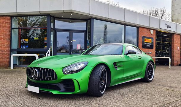 This Mercedes AMG GTR came into our Grimsby depot for a pair of rear 325/30ZR20 Michelin Pilot Sport Cup2 in the incredible AMG Green Hell Magno.Mercedes AMG GT R - Green Hell MagnoThere is no mistaking this 2017 GT R Premium from the standard AMG GT. This car earned its nickname as "The Beast of the Green Hell" after locals had seen it tested there. This specific example stands out from t