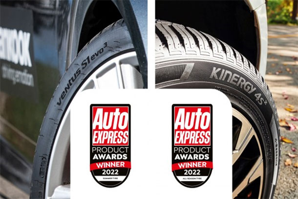 Double "Product of the Year Award" for Hankook tyres in latest Auto Express awardsSummer tyre Ventus S1 evo 3 convinces with its excellent wet braking properties and the all-weather tread Kinergy 4S 2 performed exceptionally in the aquaplaning testsWinter i*cept RS 2 secured a "Commended" rating, scoring highly for its handling in the wet and snowPremium tyre manufacturer Hankook