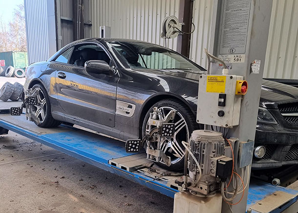 This lovely 2011 Mercedes-Benz SL Class SL63 came to our Knaresborough branch for 4 new Pirelli PZERO MO tyres and a full four-wheel alignment check and adjustment.The PZERO MO (Mercedes Original) has been produced in association with Mercedes-Benz to ensure maximum performance when fitted to certain Mercedes cars and been approved for use as both original and replacement equipment on some Mercedes