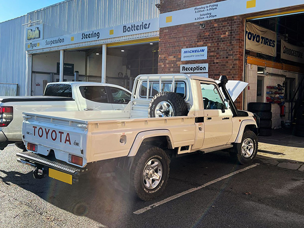 This 2021 white Toyota LandCruiser 70 pickup also known as a Ute came to our Horncastle branch for a new battery.The Toyota LandCruiser 70 pickup was imported from Australia and is a two-door single-cab cab-chassis with a 4.5 litre V8 Turbo-diesel engine which delivers the grunt to make tough jobs easy, with 151kW of power at just 3,400rpm and a huge 430Nm of torque all the way from 1,200 to 3,200rp