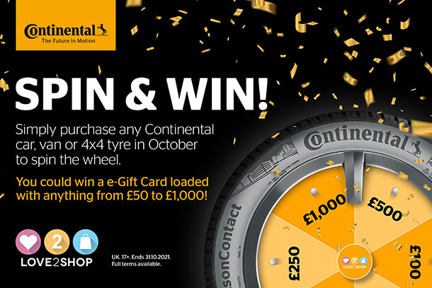To celebrate '150 years of Continental', Continental are giving away thousands of pounds worth of Love2shop e-Gift Cards in their latest promotion.Running throughout the month of October, Continental's Spin & Win promotion gives you the chance to win some great prizes! They've teamed up with Love2shop to offer a range of gift cards ranging from £50 to an amazing £1,000.To play and ha