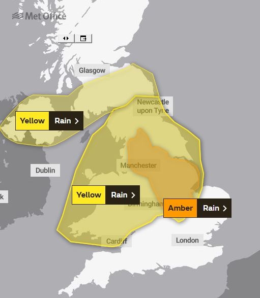 The Met Office has issued an Amber weather warning for spells of prolonged rain that may lead to flooding & disrupt travel starting tomorrow (Tuesday 19th Jan).The Met Office are forecasting all of England will have a yellow warning by Wednesday & they are not expecting the rain to end until Thursday (20th Jan)Driving conditions are expected to be difficult due to spray & flooding with p
