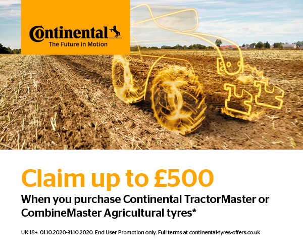 Harvest Promotion - High performance Agricultural Tyres.Claim up to £500 when you purchase Continental Agriculturaltyres* Purchase Continental TractorMaster, or CombineMaster tyres andclaim £500 for 4 tyres and £200 for 2.Offer available 1st-31st October 2020. How to claimTo claim your reward simply visitcontinental-tyres-offers.co.uk or complete the claim form in the booklet.It's