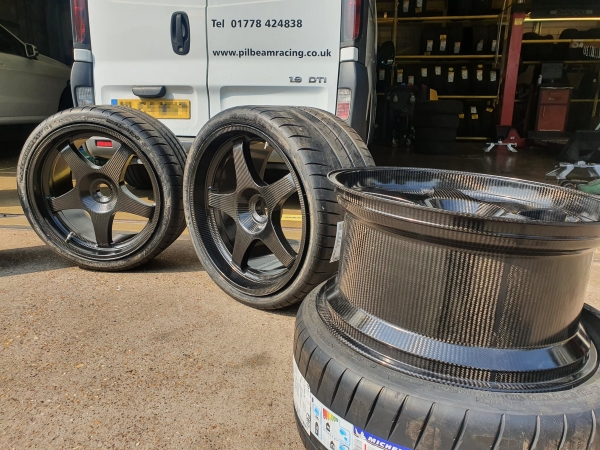Bush Tyres Spalding fitted a full set of 245/35ZR19 & 325/25ZR20 Michelin Pilot Sport Cup 2 tyres to bespoke carbon fibre wheels for Pilbeam Racing.Fitting low profile tyres is a skilled job at any time, but knowing each wheel costs around £12,000 adds to the pressure & it has to besaid, our tyre technicians were, understandably, relieved when the jobwas successfully completed. The whe