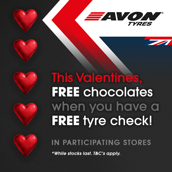 This Valentines Day, Avon, in association with Bush Tyres, are spreading a little love by giving away Free Lindt chocolates.All you have to do is call into one of our centres & have a Free tyre check. T's & C's: This is a 'while stock last' promotion, available at participating centers. There are no cash or alternate gift options.
