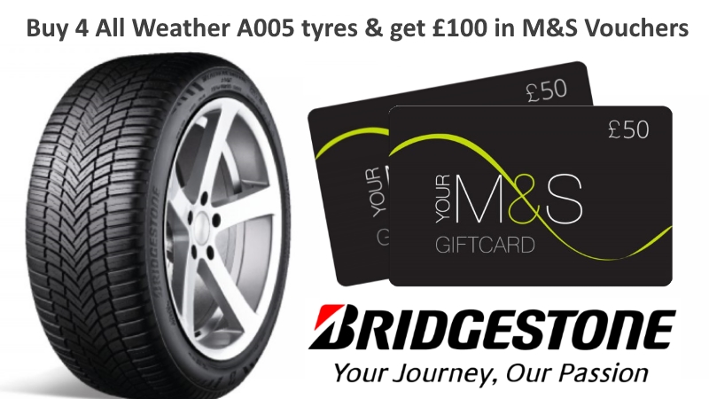 £100 in M&S vouchers when you buy Bridgestone A005 All Weather Tyres