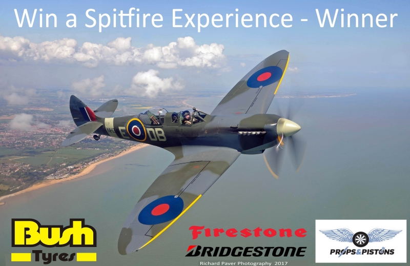 Brian Williams received his Aero Legends Spitfire Experience prize from Samantha Allatt (Bridgestone) and Matthew Lincoln (Bush Tyres)Congratulationsto Mr Brian Williams on winning the Spitfire Experience Competition in association with Bush Tyres,Bridgestone/Firestone & Props & Pistons.Mr BrainWilliams (pictured centre) received his Spitfire Experience prize from Samantha Allatt(Bridgestone
