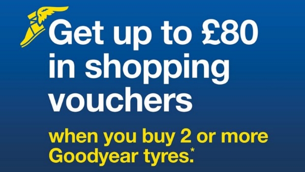 Goodyear are offering up to £80 in either John Lewis or Amazon shopping voucherswhen you purchase 2 or more of their tyres from any of our Bush Tyre centres How to claim your shopping vouchers:Purchase 2 or more 16" tyres or above from any of our Bush tyre centres Visit goodyearrewards.co.uk and enter promotional code from the card given to you at our centre.Uploa