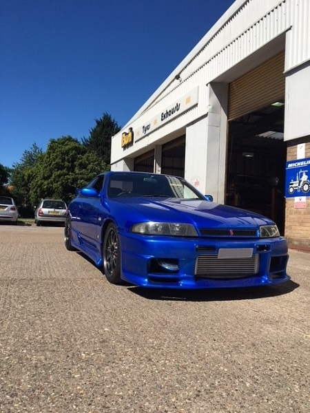 Monterey Blue Nissan Skyline R33 GTST in at Beverley having a wheel swop to a new set of Japan Racing JR5 Wheels.www.bushtyres.co.uk