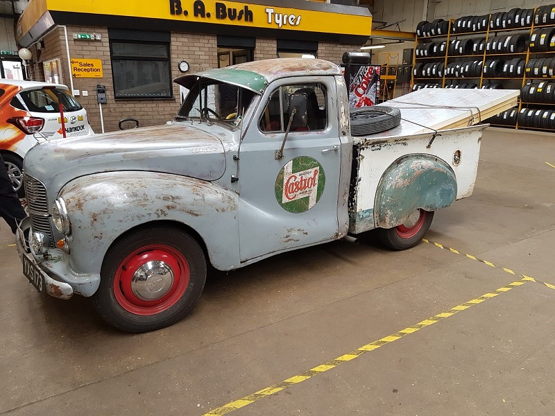 Fantastically cool Australian import Austin A40 van fitted with a 1.6 Cambridge engine and Porsche seats in at our Boston centre for free tyre Health Check and pressure adjustment. www.bushtyres.co.uk
