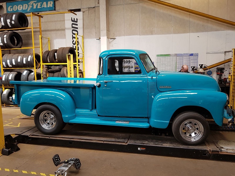 1949 Chevrolet 3100 5.7Litre V8 Pickup.In for a Full Alignment setup at our Boston Depot. https://www.bushtyres.co.uk/tyres-in-boston