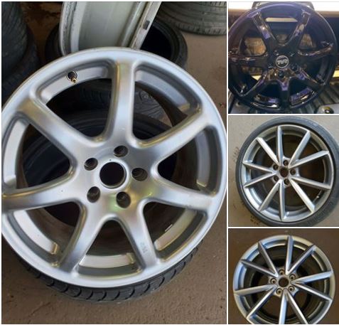 Before and after, TVR wheels in for powder coating black to be refitted with new TOYO TIRES and black adhesive balance weights, Audi RS wheels having smart repair on section of the wheel. We offer full service of wheel refurbishment powder coating and Alloy wheel straightening. https://www.bushtyres.co.uk/