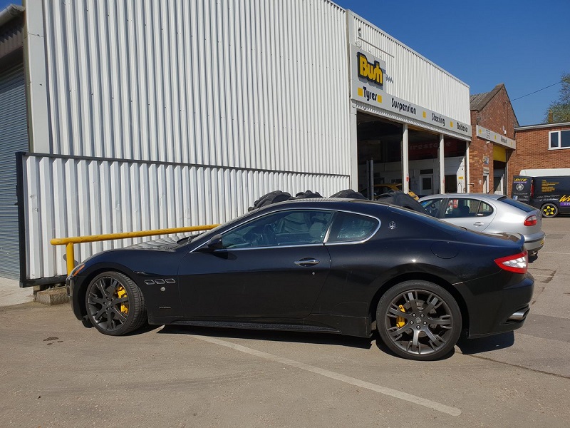 Maserati GranTurismo S in for a pair of new 285/35ZR20 Pirelli PZero rear tyres. Fitted with Black Adhesive Balance weights. https://www.bushtyres.co.uk/tyres-in-horncastle