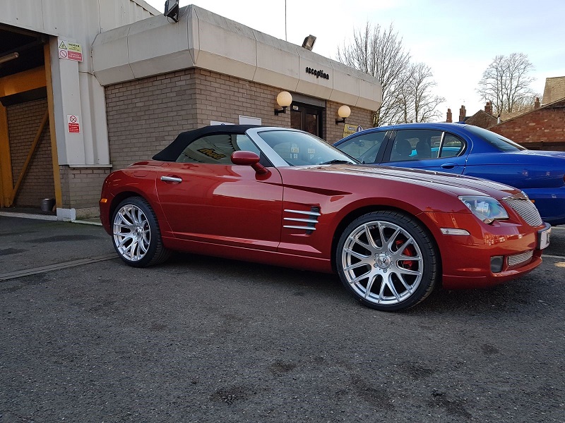 Full set of Zito 935 wheels.8.5x 19 Front & 9.5x19 Rear in silver and hub centric spacers Fitted to this Chrysler Cross fire Convertible fitted with Rapid P609 tyres at Boston Depot. https://www.bushtyres.co.uk/tyres-in-boston