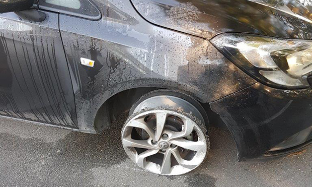 Tyre damageRelatively new Vauxhall Corsa, the owner choose to drive over 18 miles in this state, before coming to Grimsby depot. They are now in need of a new wheel tyre pressure sensor and potentially more.
