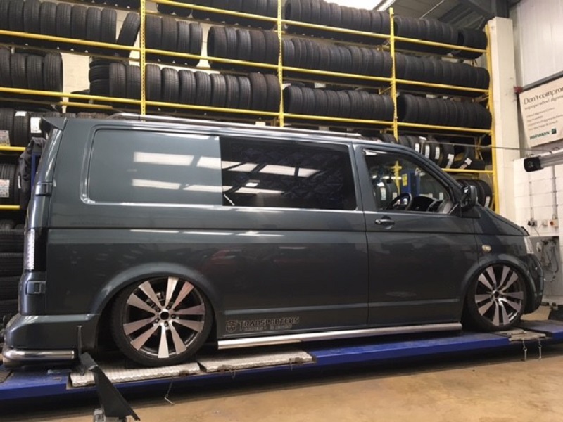 Volkswagen T5 LWBThis Volkswagen T5 LWB, fitted with Air suspension, visited our Bourne Branch for Wheel Alignment.
