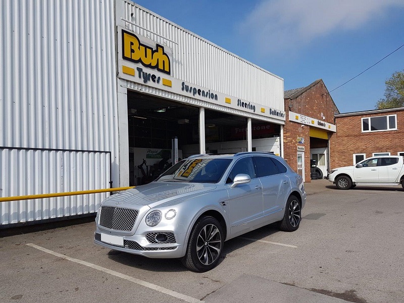 600bhp, twin-turbocharged W12 BentaygaThis 600bhp, twin-turbocharged W12 Bentayga; Bentley's first 4x4, visited our Horncastle depot for a full set of 28545R21 113W Pirelli Scorpion Verdes with black wheel weights.