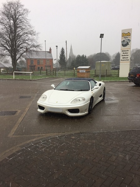 A supercar braving the snow in Spalding!This 2005 Ferrari 360 Spider, fitted with a Challenge Stradale front bumper and F430 wheels, had a full alignment setup.For more information on our Spalding depot, or to find the nearest to you, please use our branch finder.