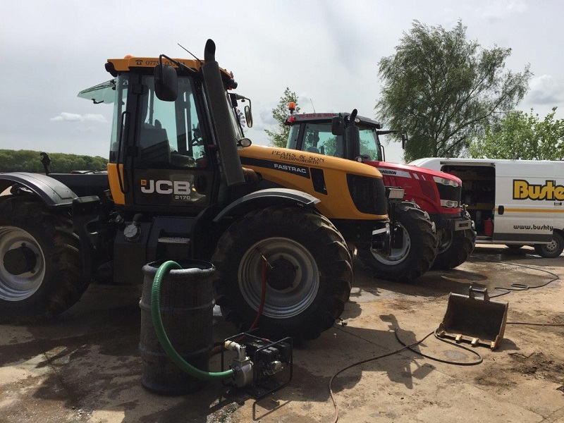 A JCB Fastrac and Massey Ferguson being ballasted by http://www.bushtyres.co.uk/store-locator/