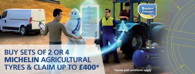 We are happy to announce that our Michelin and Kleber cashback offer has returned and gives you the chance to get more cashback than ever before!This offer allows you to claim up to £400 on any purchase of Michelin or Kleber agricultural tyres.To see more information about this and our other offers please click the link below:http://www.bushtyres.co.uk/specials/1-Special-Offers-Discounts-on