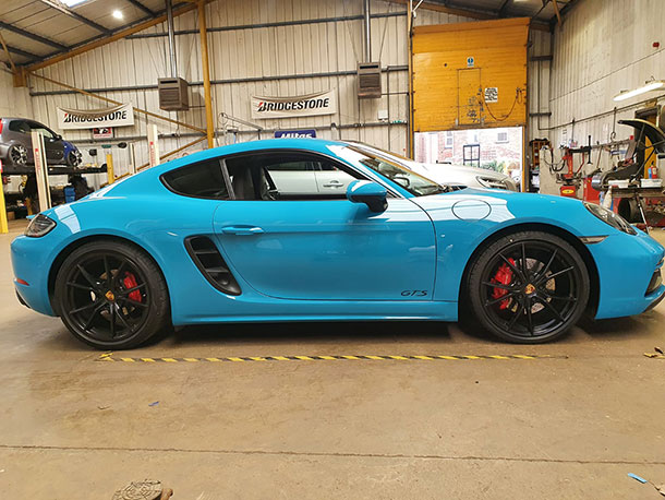 Our Boston branch has been very lucky over the last few weeks, and has worked on a range of stunning cars, including this beautiful Porsche 718 Cayman GTS in Miami blue. The 718 Cayman came in for new tyres and the team fitted two new front 235/35ZR20 Pirelli P ZERO N1 Porsche fitment tyres.
