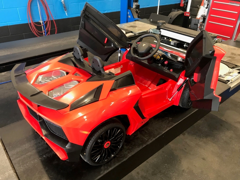 This brilliant Lambourghini comes with built in radio, aux and SD slot. It also has a wireless steering controller to enable full control on those tight bends on thefootpaths around Lincoln.