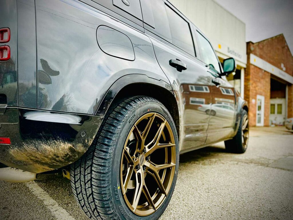 This 2023 Land Rover Defender 110 X-DYNAMIC HSE visited our Horncastle Branch for a full set of Vossen HF-5 alloy wheels. Supplied and fitted with a full Set of, “don’t forget the spare”, Yokohama Geolander GO15 All Terrain Tyres. This car is ready for any adventure.